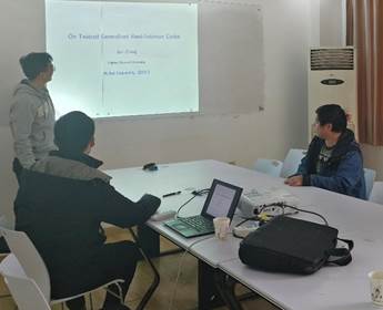 报告中,张俊副教授为大家介绍了Reed-Solomon码的基本概念以及研究现状。之后给出一类twisted generalized Reed-Solomon码并着重讲解这类码的相关性质,确定了它的极小距离和对偶码,并给出了这类码在特殊情况下自对偶的充分必要条件等。报告结束后,张俊副教授耐心解答了各位学生提出的问题。本次报告内容丰富充实,让大家对代数编码的理论及发展有了更深刻的了解。
