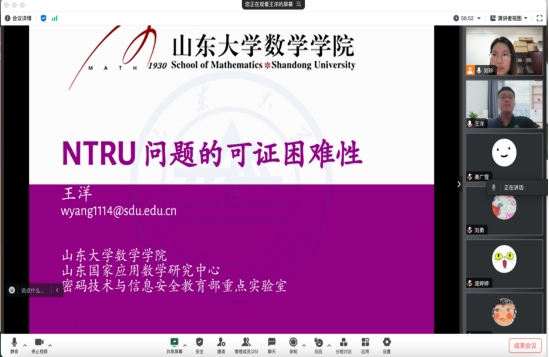2023年9月28日下午,山东大学王洋助理研究员应邀为我院相关专业的教师与研究生作了题为“NTRU问题的可证困难性”的线上学术报告。