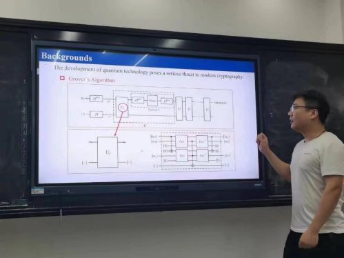 报告中,林达博士从密码算法的线性层优化、S盒设计等方面,向在场师生介绍了密码算法的量子实现的背景知识和研究现状。首先,林达博士探讨了密码算法线性层的设计原理,指出了特殊情况下线性层优化实现的规律。随后,林达博士介绍了密码算法中S盒部分的设计原理以及其在量子实现中的应用。