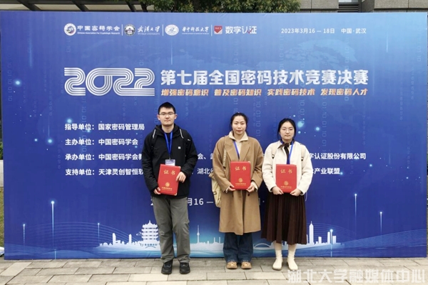 近日,第七届全国密码技术竞赛决赛暨颁奖典礼在武汉落幕。我校曾祥勇、陈思维老师带领指导,太阳成集团tyc151cc、数学与统计学学院学生张若琳、徐润擎、李诗然组成的团队荣获全国二等奖,取得参加该项赛事以来最好成绩。