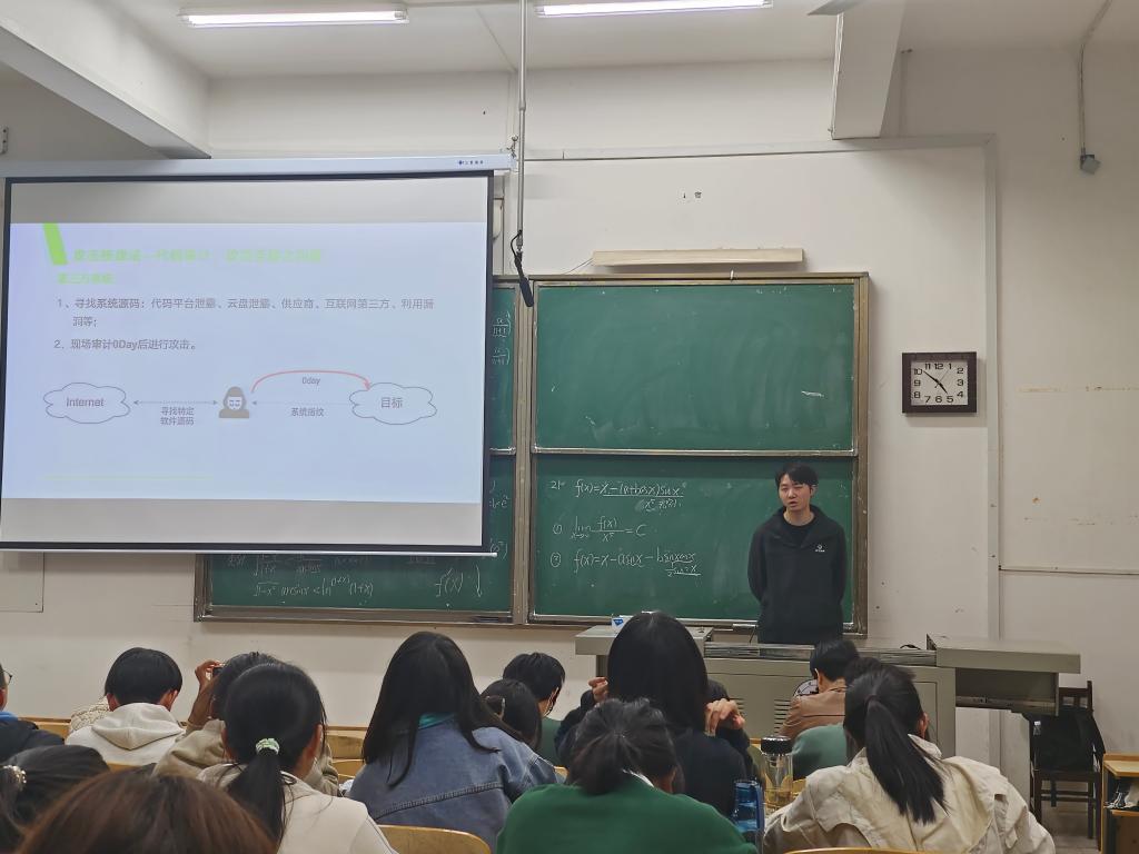 宋建华教授和向泽军主任分别向学生介绍了相关专业重要的学科竞赛以及相应的专业知识和技能储备要求,鼓励学生通过积极参加学科竞赛不断提高个人实践能力,培养严谨求实的学习态度和勇于探索、积极进取的科学精神。学院2020级信息安全专业学科竞赛获奖学生代表以自身备赛、参赛的经历为同学们作了经验分享,鼓励学弟学妹们积极参赛、勇于挑战。来自武汉安域信息安全技术有限公司的技术骨干就学科竞赛活动及技术能力需求、密评行业技术能力需求进行了专题介绍,同时结合项目和案例为学院师生带来丰富的行业前沿信息。
