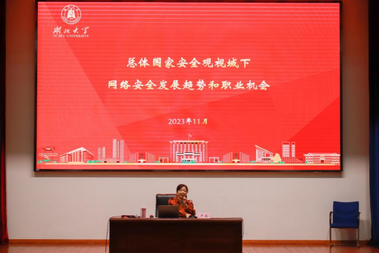 11月25日上午,学院在三号楼报告厅开展了学生职业规划和就业指导,学工处严蓉副教授以《总体国家安全观视域下网络安全发展趋势和职业机会》为题作了专题报告。本次活动是为了帮助我院学生深入了解网络安全的行业现状与发展前景,同时有针对性开展职业规划和就业指导,学院300余名同学参加。