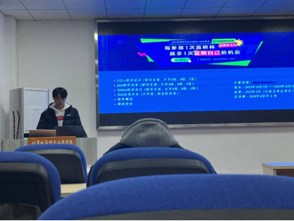 活动中,巴凯洋结合自身经历为大家分析了当前大学生所面临的机遇、挑战以及主要矛盾,强调学习效率的重要性,希望同学们能“调整好心态,坚定105°热爱,努力实现360°奔赴”。谢世强分享了参加学科竞赛经历,并在现场演示了比赛实战技巧,从CTF技术出发,为同学们分享了pwn手必备的工具WSL,并展示了使用方法。最后,他鼓励大家一起参与到学科竞赛中去,积累实践经验,提升实战能力,为今后的职业发展打好坚实基础。另外,人工智能学院的陈敏、叶灵琪也做了经验交流。