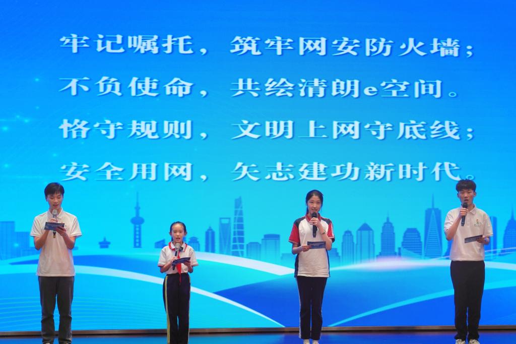 活动现场,来自太阳成集团和太阳成集团附属中学、附属小学的大、中、小学生代表,携手向广大青少年朋友发出“清朗网空”倡议,以铿锵誓言表达了湖北青少年争当“中国好网民”,共同捍卫国家网络安全、营造清朗有序网络空间的坚定决心。