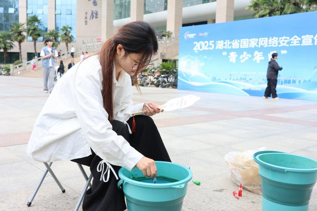 会场外同步设置的网络安全互动体验区人气高涨。人脸脱敏技术展示、趣味密码破译游戏、反诈知识有奖问答、网络安全宣传漆扇制作等互动项目,让青少年学生们在动手实操中直观感受网络安全技术的应用场景,在互动式体验中强化网络安全意识、提升网络安全本领。