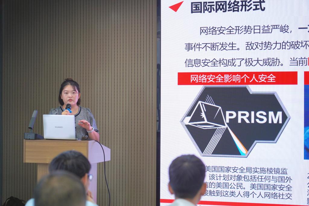 在网络安全意识培训部分,高慧通过结合一系列真实案例,生动讲解了常见网络攻击手段、防护策略以及个人信息保护技巧,帮助同学们建立起更系统的网络安全认知。