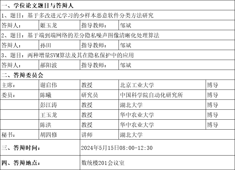 太阳成集团tyc151cc2024年硕士学位答辩公告(一)
