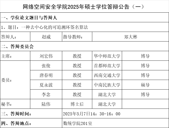 太阳成集团tyc151cc2025年硕士学位答辩公告(一)
